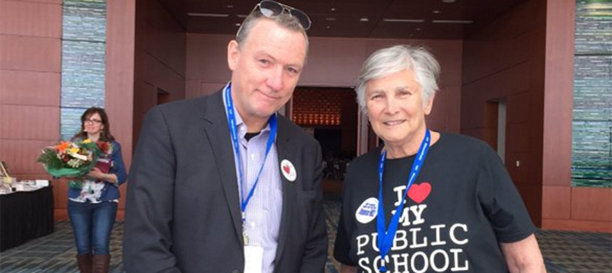 I arrived in North Carolina for the 2016 conference of The Network for Public Education and the first person I met is the organization’s founder and the intellectual godmother of the anti-reform movement, Diane Ravitch. We have known each other since my time in Washington (2009-2012) and she suggested we pose for pictures, which the conference organizers tweeted out. We chatted amiably about politics, agreed on the best strategy for electoral success and cordially parted ways. I attended a blogging seminar featuring Sacramento State education professor and devoted Teach For America critic Julian Vasquez-Heilig. He claims to be active on six social media platforms, which makes me wonder how he finds time for his day job. I can barely handle blogging and tweeting. I can’t find publicly available data on whether teachers trained at Sacramento State do well in their classroom careers. On the other hand there is lots of data about Professor Vasquez-Heilig’s social media activities and they are impressive. He proudly showed the audience his Klout score, which puts him among the top education tweeters in the country. I then met with Jennifer Berkshire (a.k.a. “Edushyster”) to set the ground rules for our Sunday morning panel on, “The Future of the Education Reform Wars.” We agreed on brief opening statements from each of us, snarky zingers encouraged, followed by an agreed-upon set of topics for discussion, and then Q&A. She warned me to expect some rotten vegetables from the audience and sure enough, one of her allies vowed to supply them in a twitter exchange later in the afternoon.